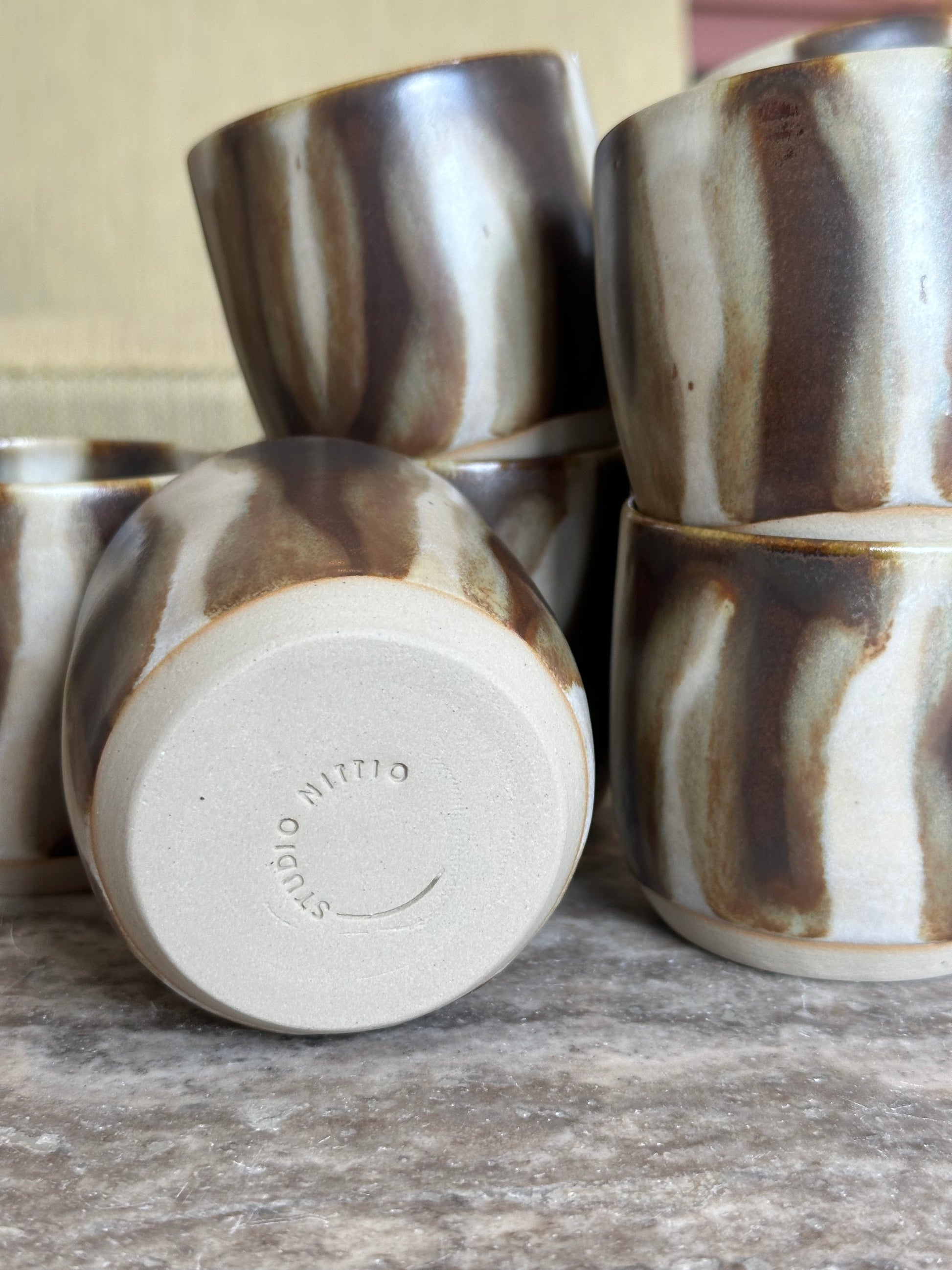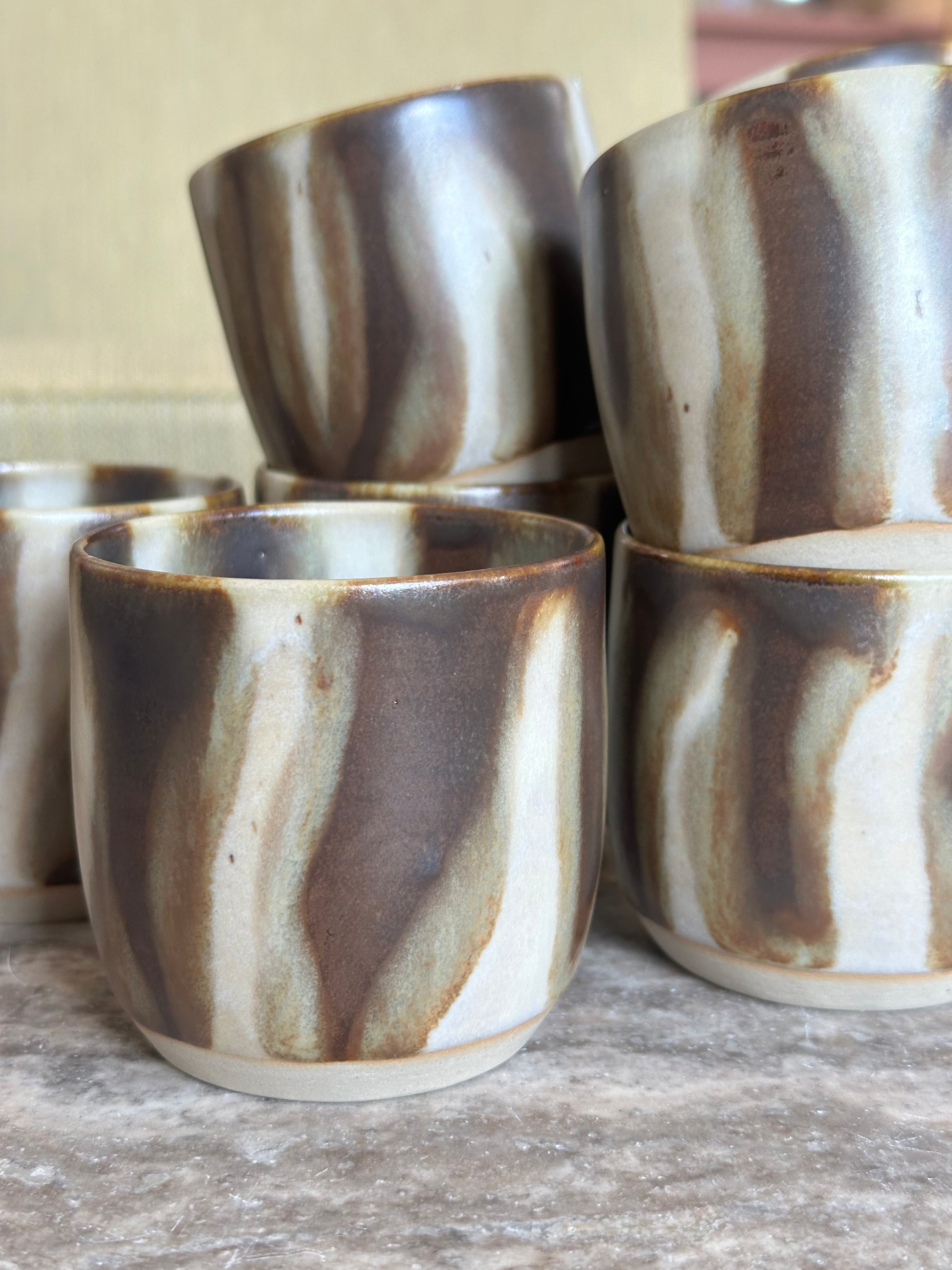 Glasyr med skiftningar i beige/vit, brun och svart. Silkesmatt finish.