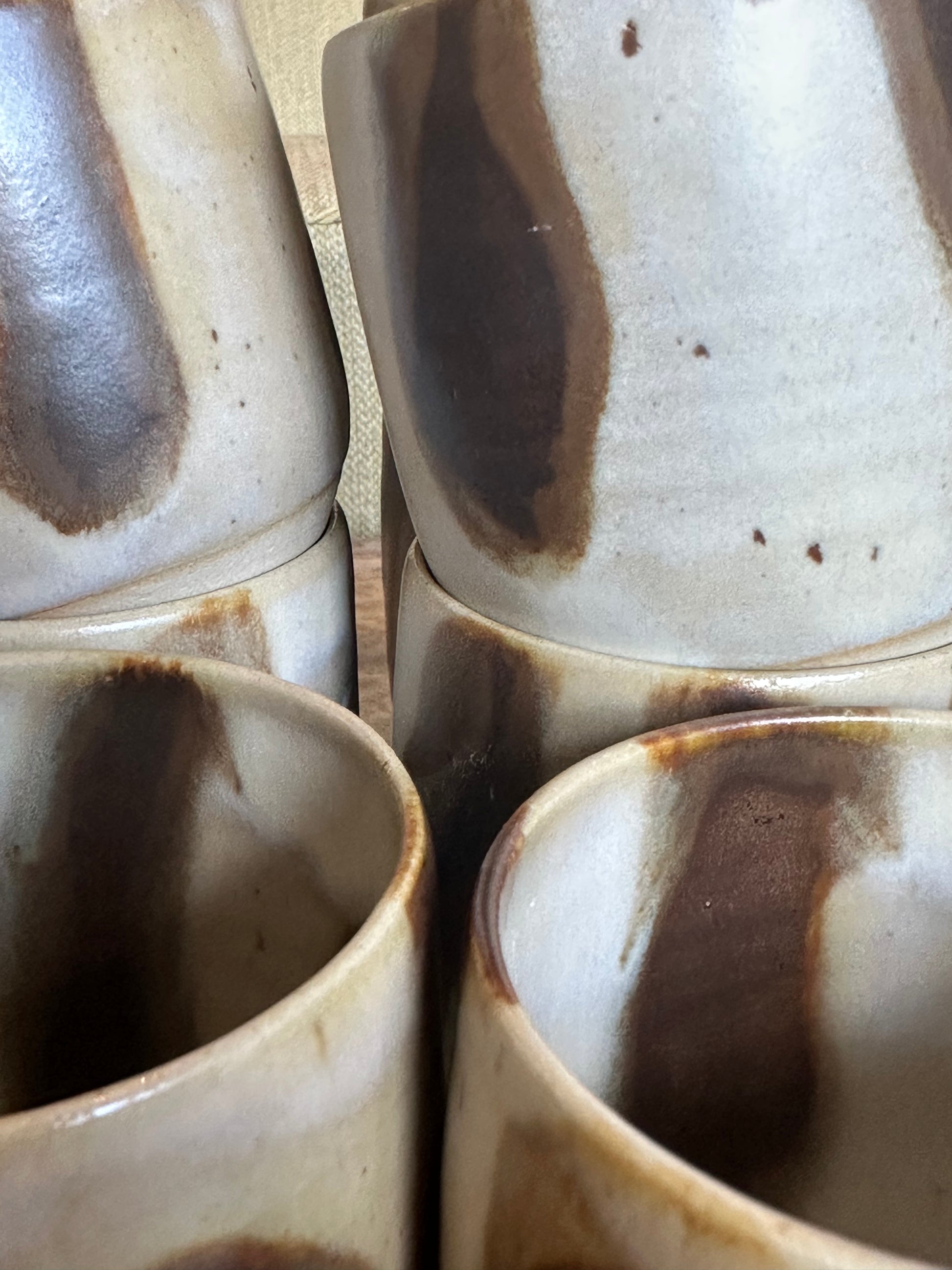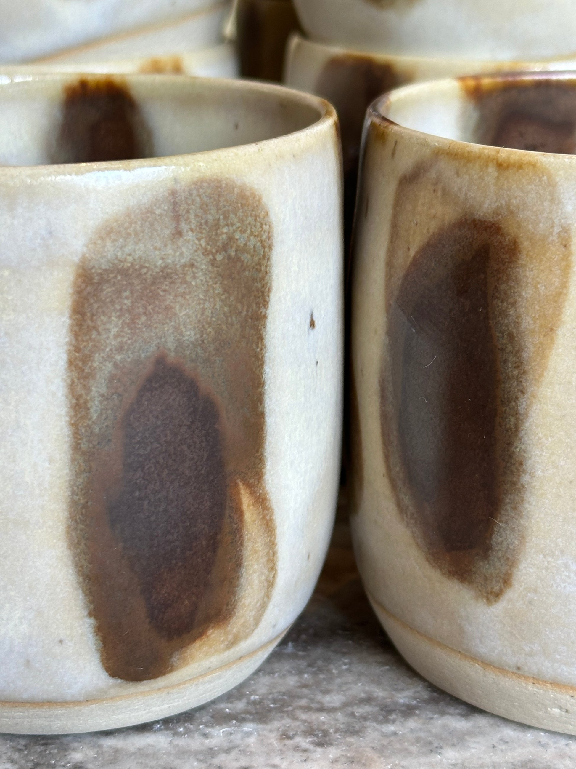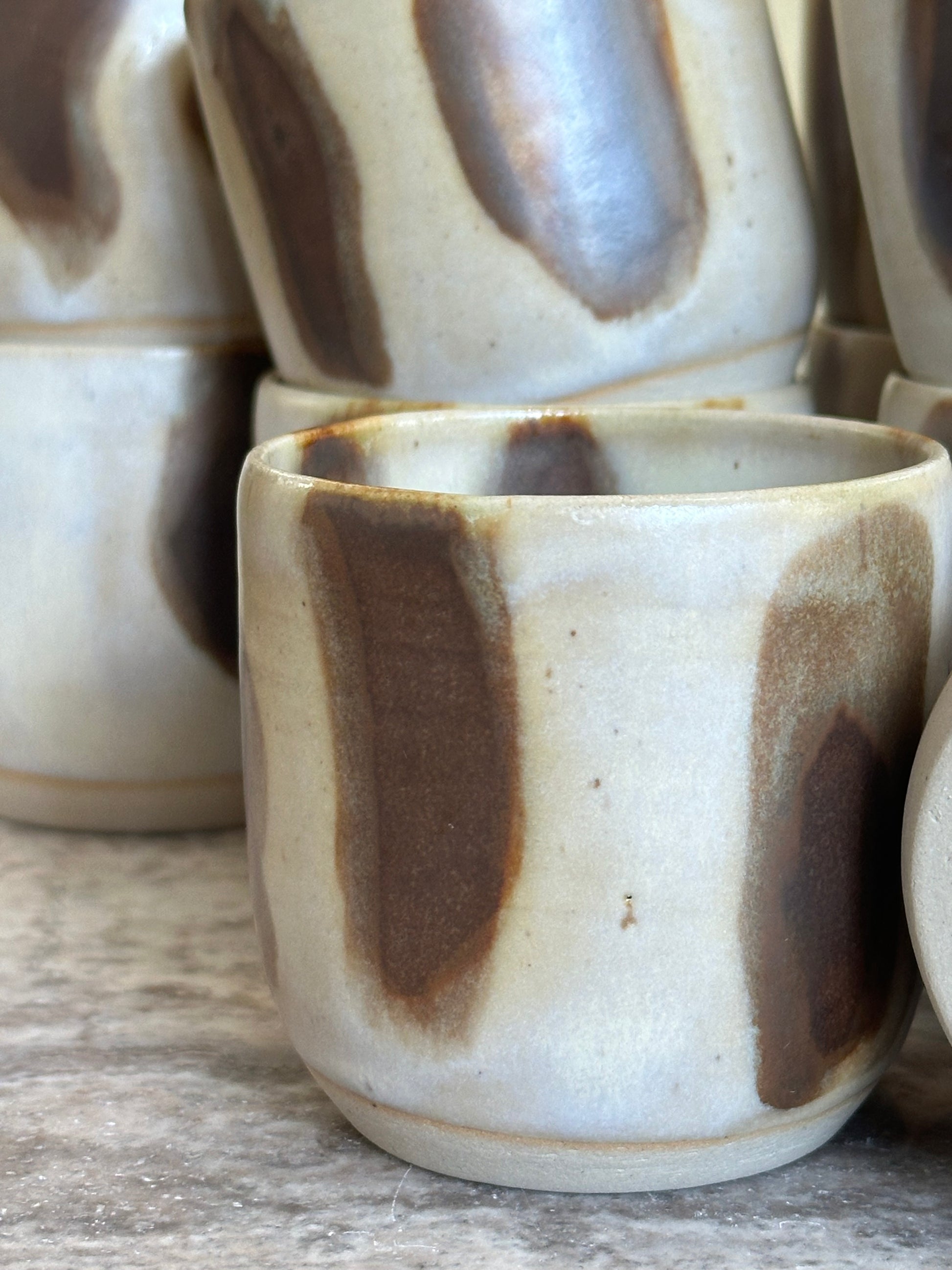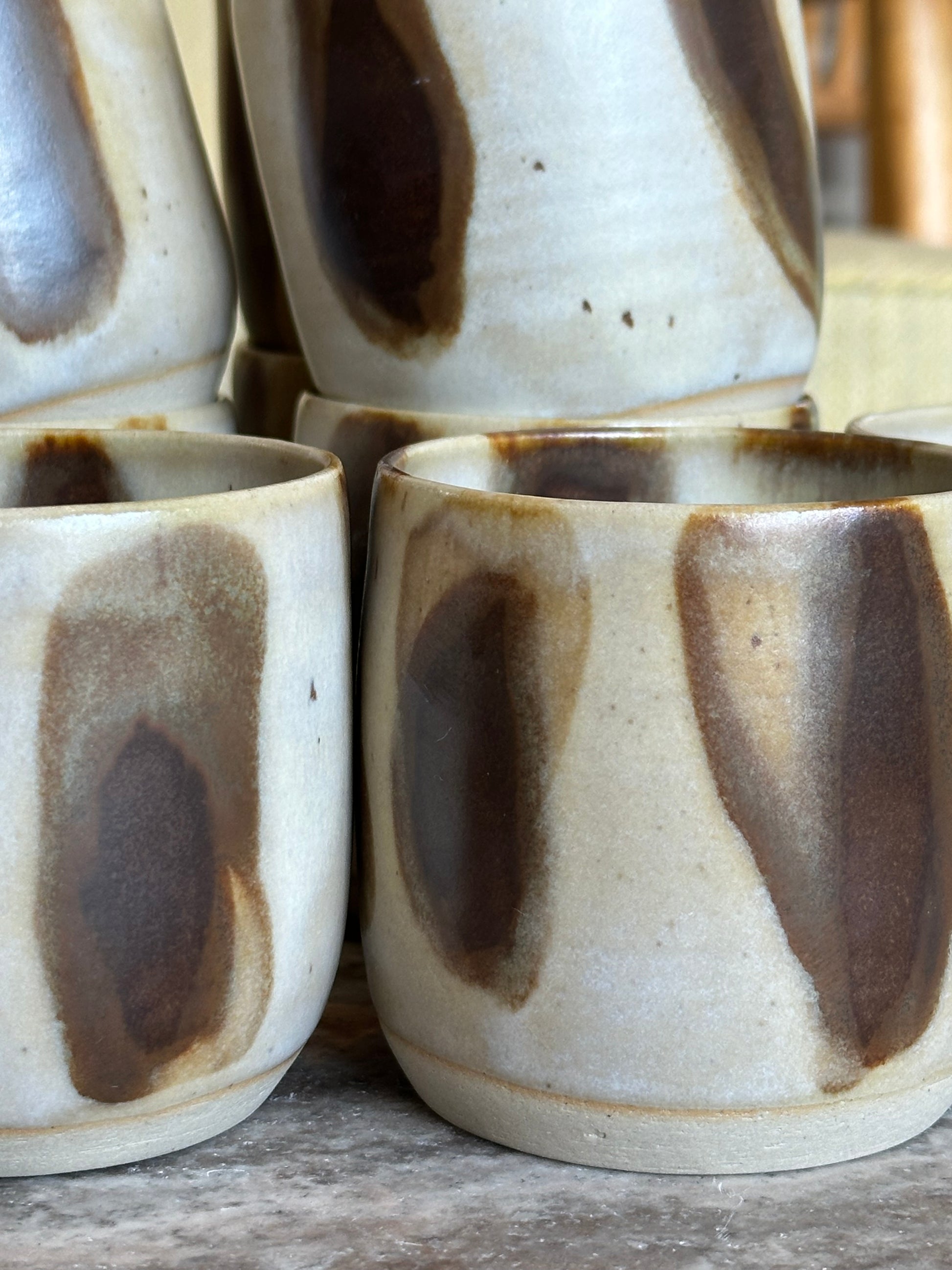 Glasyr med skiftningar i beige/vit, brun och svart. Silkesmatt finish.